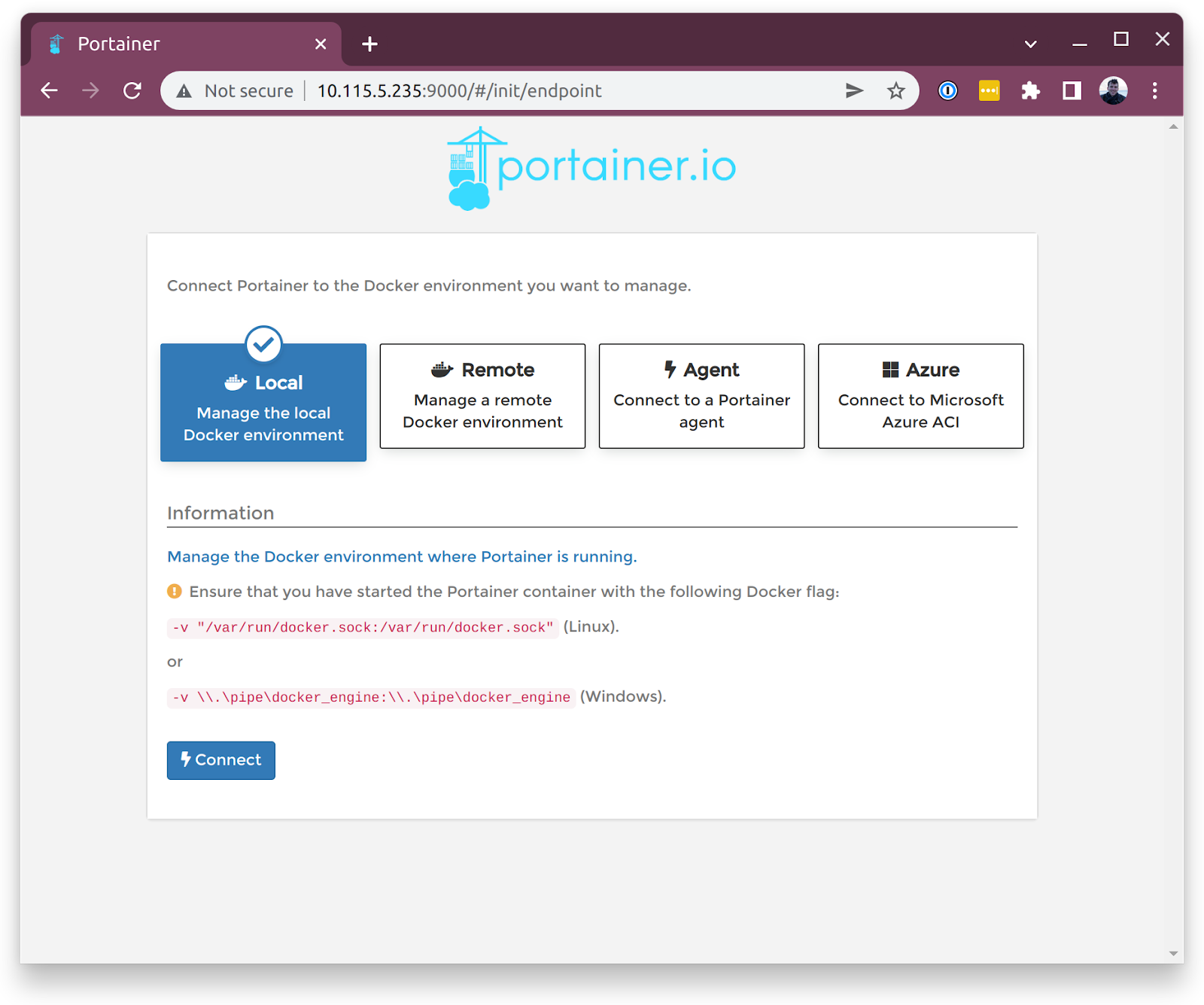 Portainer - Select "Local"
