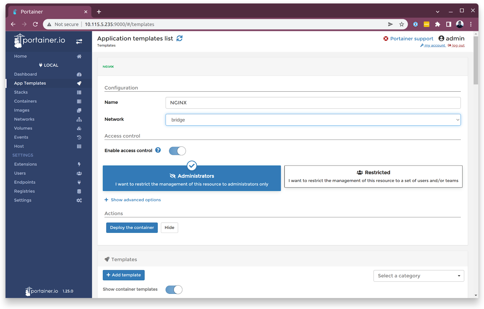 Portainer - Select "App templates"