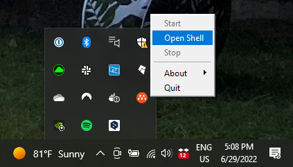 Multipass tray icon - Select "Open shell"